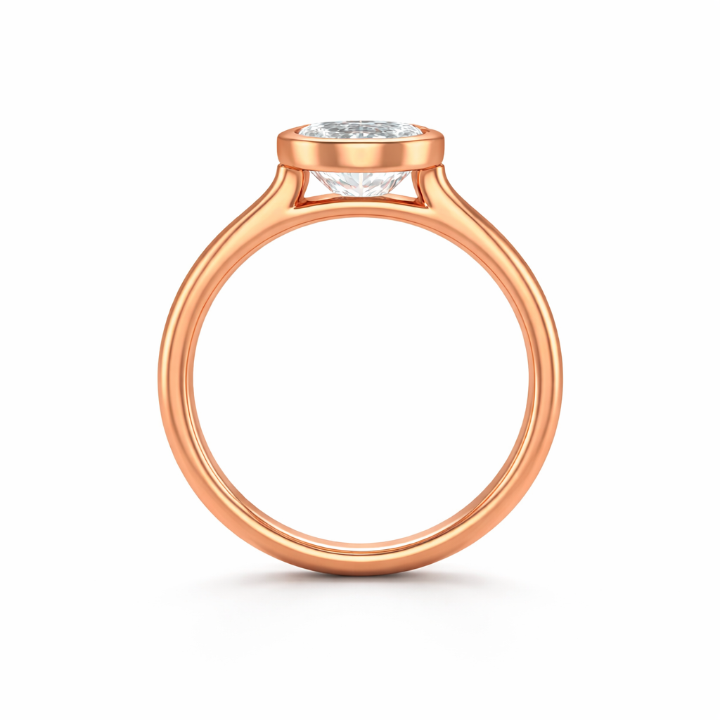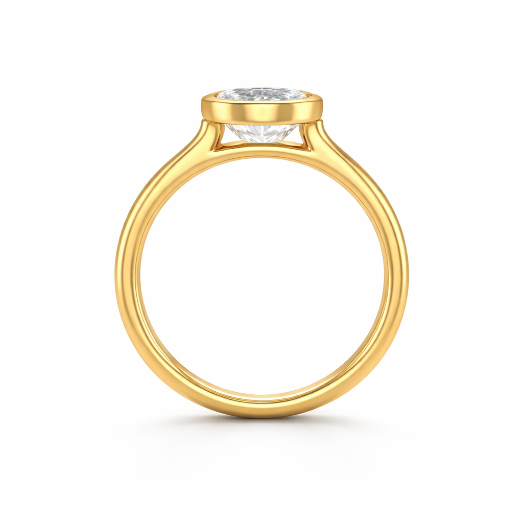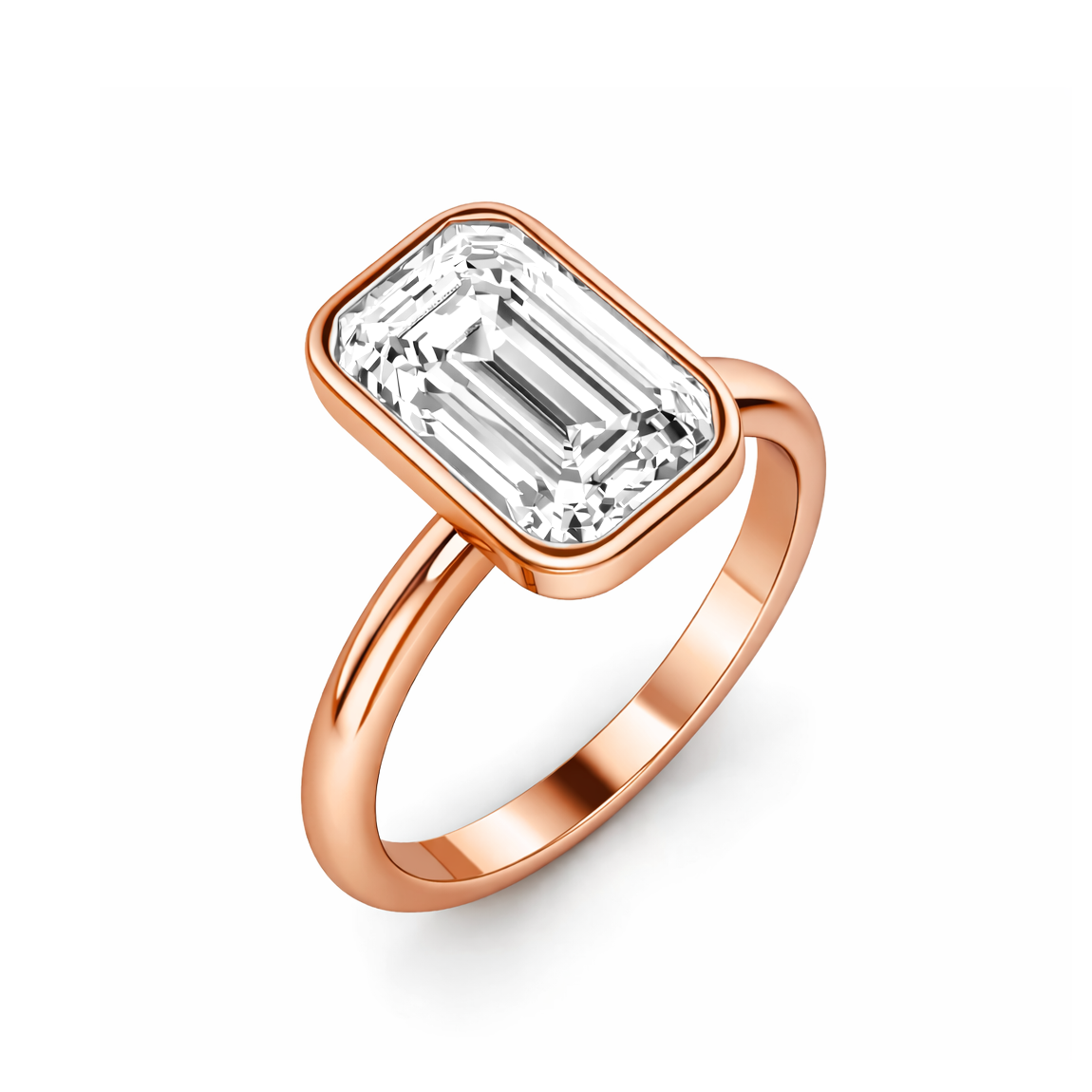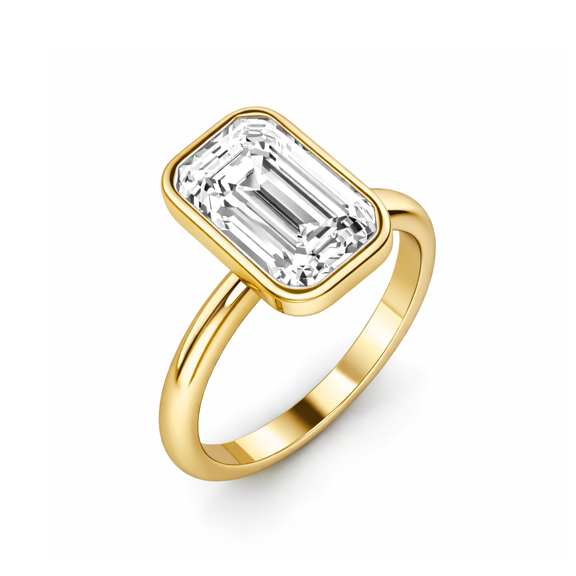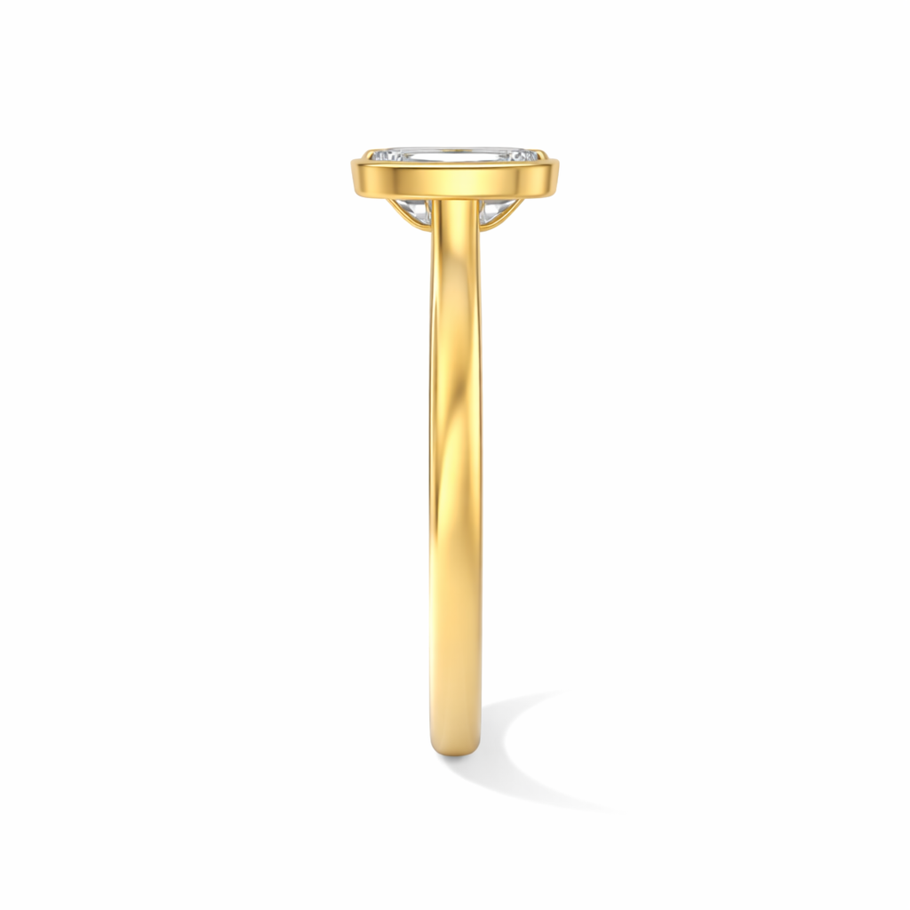 Showcase timeless elegance with this Bezel Set Emerald Engagement Ring featuring a cathedral setting. This stunning piece highlights a magnificent emerald diamond securely encased in a sleek bezel setting, enhancing its brilliance. The band gracefully rises to meet the diamond, creating a classic cathedral look that draws all eyes to the stone's captivating sparkle.
