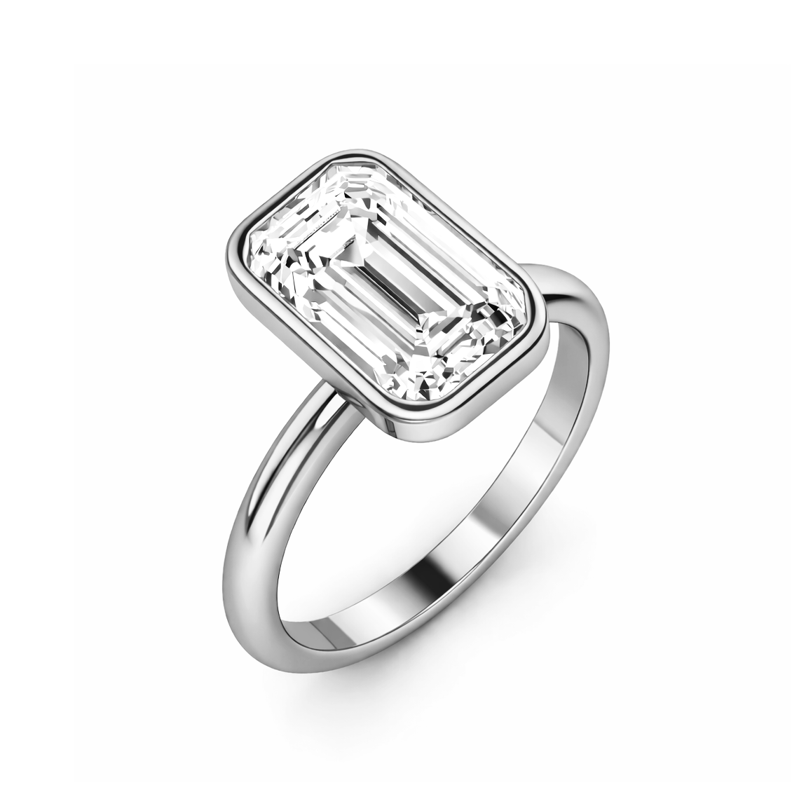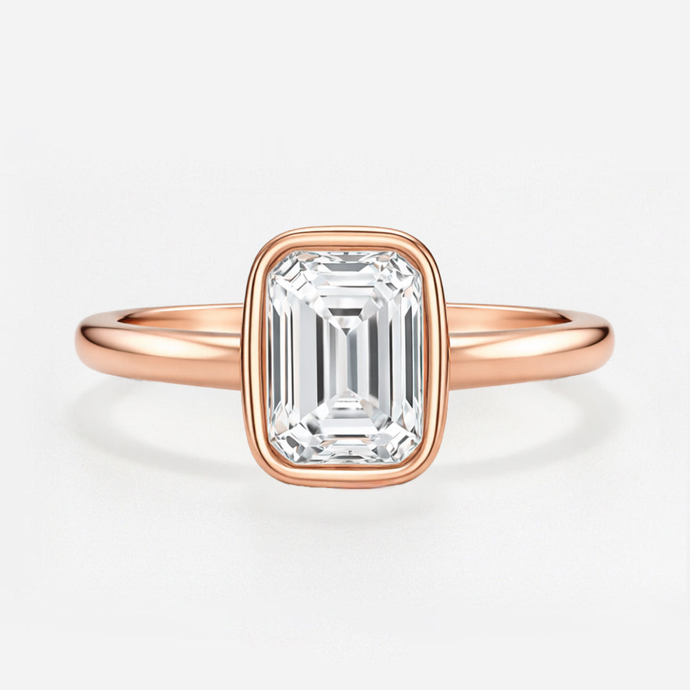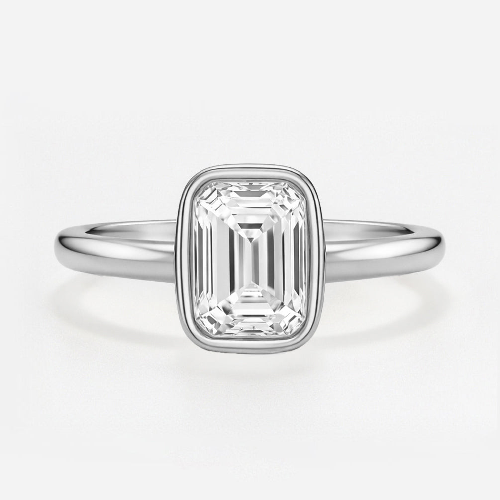 The Serenity Ring - Bezel Set Cathedral Emerald Solitaire