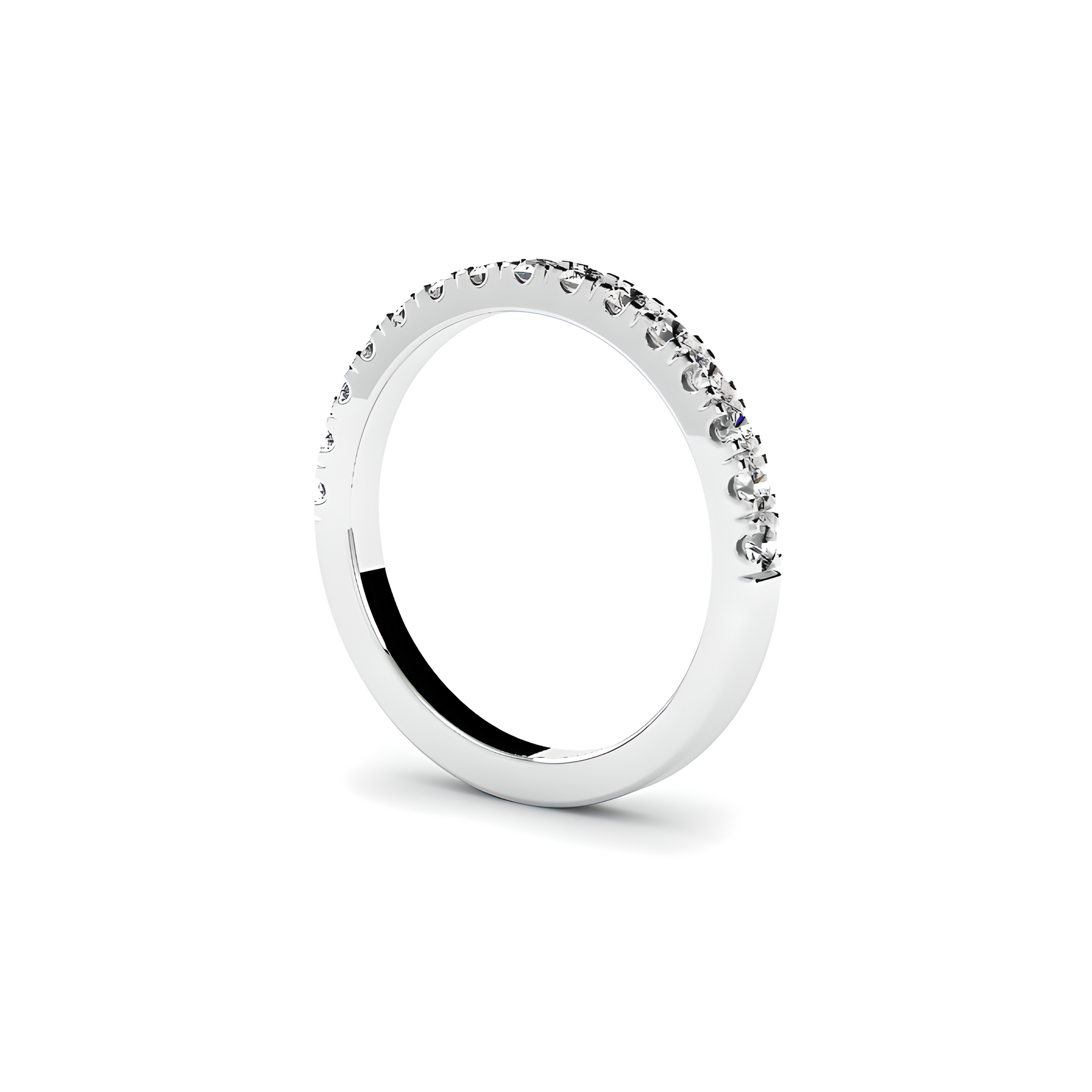Split claw wedding band set halfway with 1.95mm RBC’s (Approx TDW= 0.42ct)