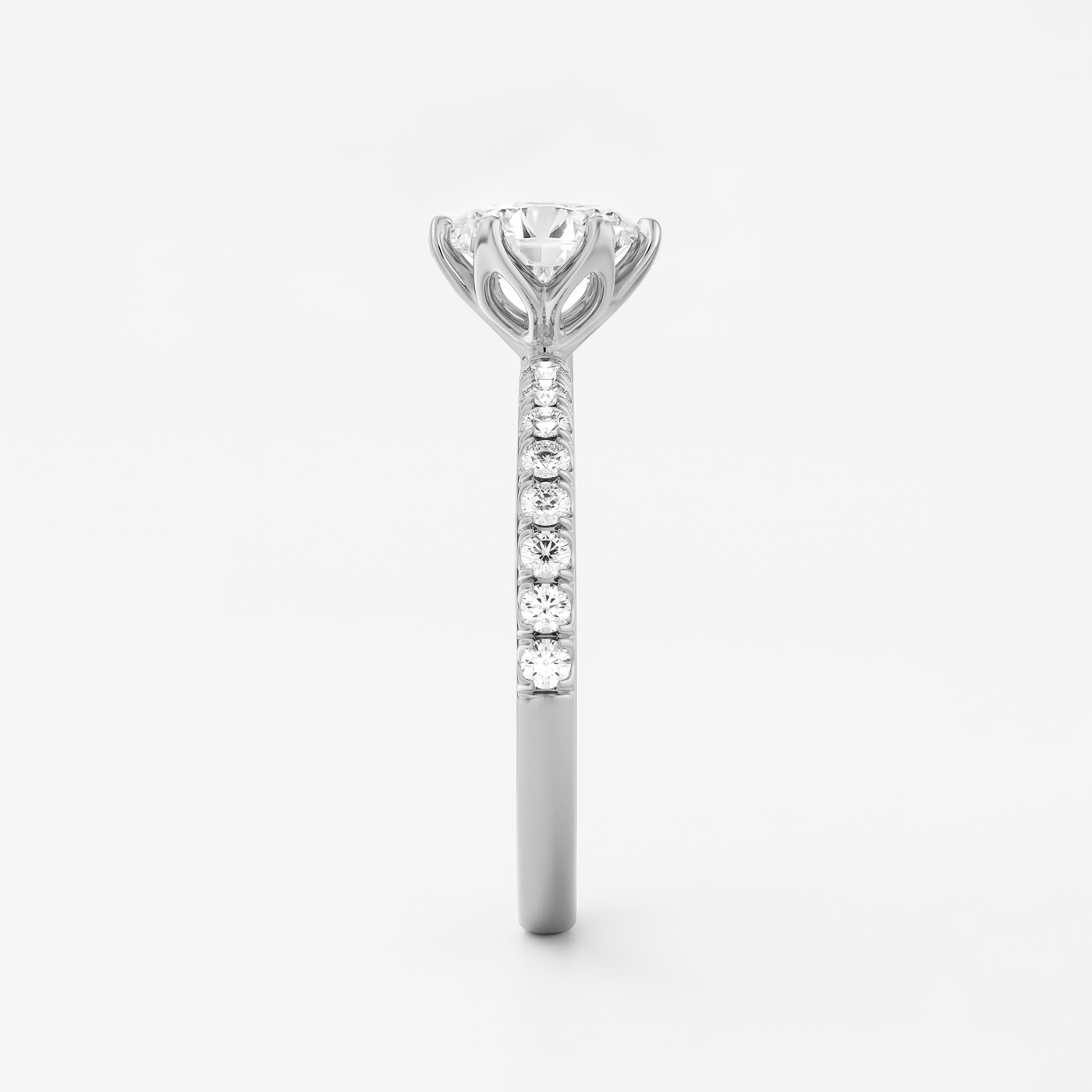 This engagement ring is fully customisable with your choice of centre stone shapes, including round, oval, marquise, and more. It is available in your preferred metal: 14K or 18K yellow, white, or rose gold, as well as platinum.