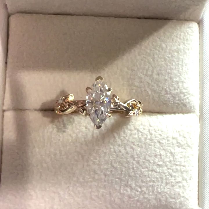 The Liana Ring is fully customisable with your choice of centre stone shapes, including marquise, round, oval, and more. It is available in your preferred metal: 14K or 18K yellow, white, or rose gold, as well as platinum.