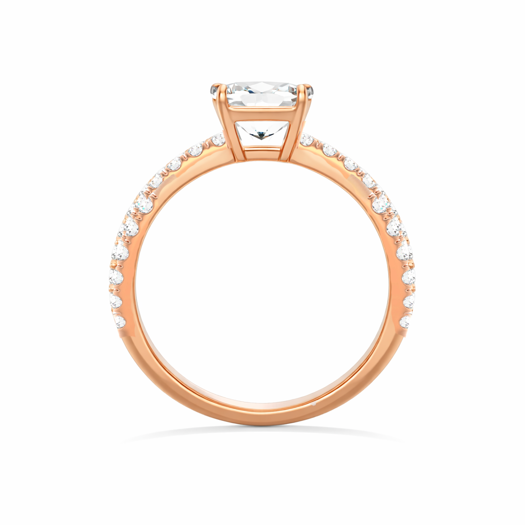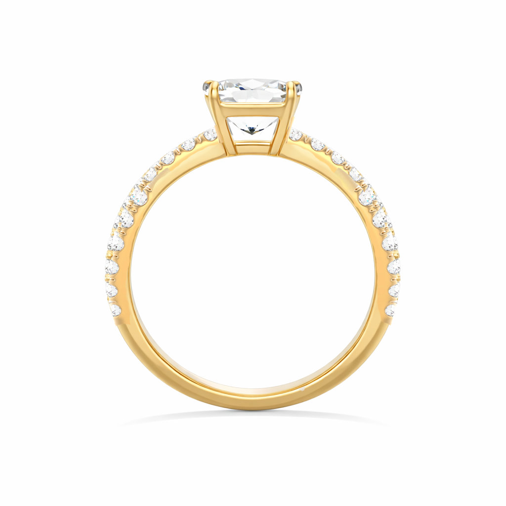 This engagement ring is fully customisable with your choice of centre stone shapes, including round, oval, marquise, and more. It is available in your preferred metal: 14K or 18K yellow, white, or rose gold, as well as platinum.