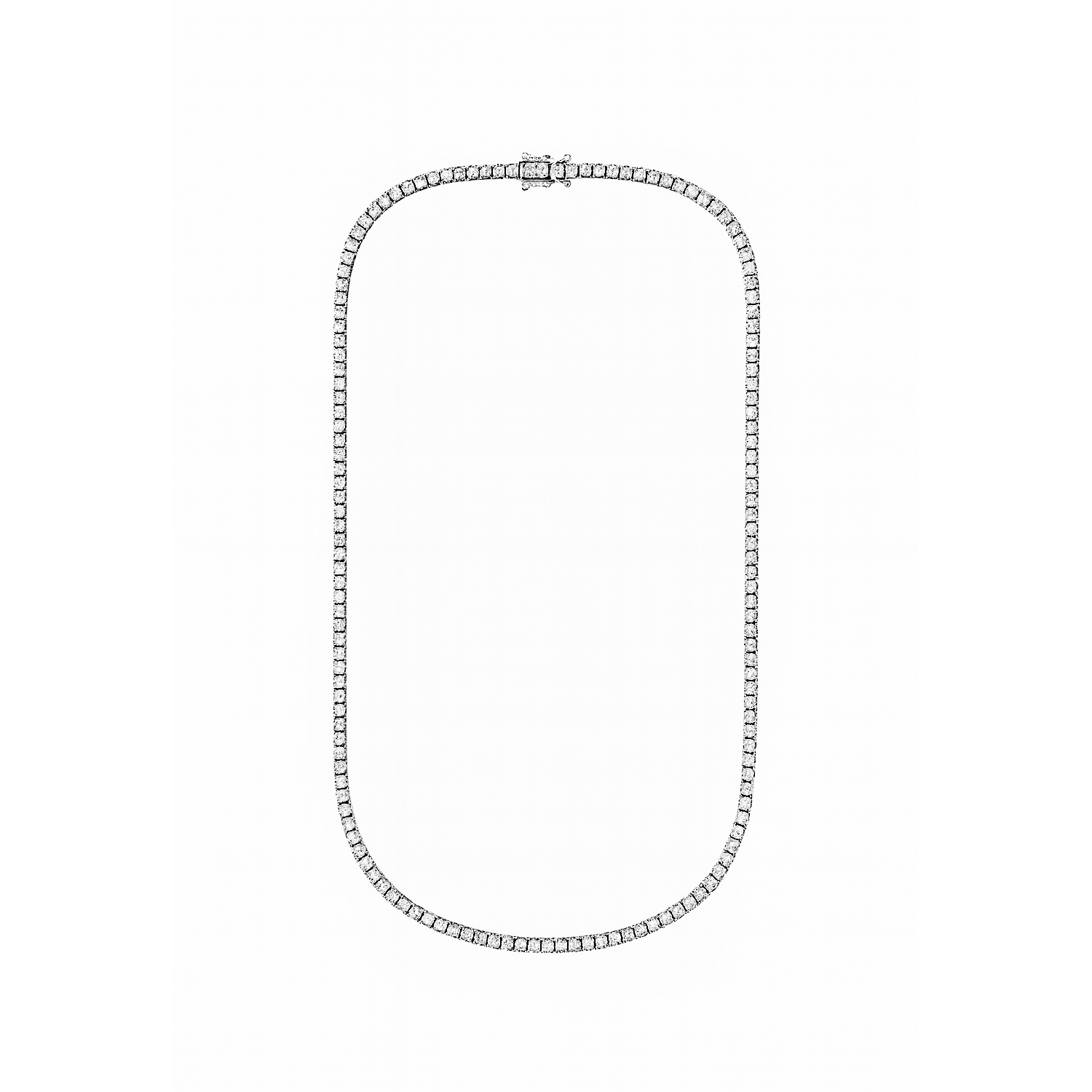 A timeless expression of elegance, this classic tennis necklace is crafted in luminous 14K white gold and set with an exceptional 178 lab-grown diamonds, totalling 7.12 carats. Each diamond is precisely matched and expertly set to create a continuous line of brilliance that drapes beautifully around the neckline.