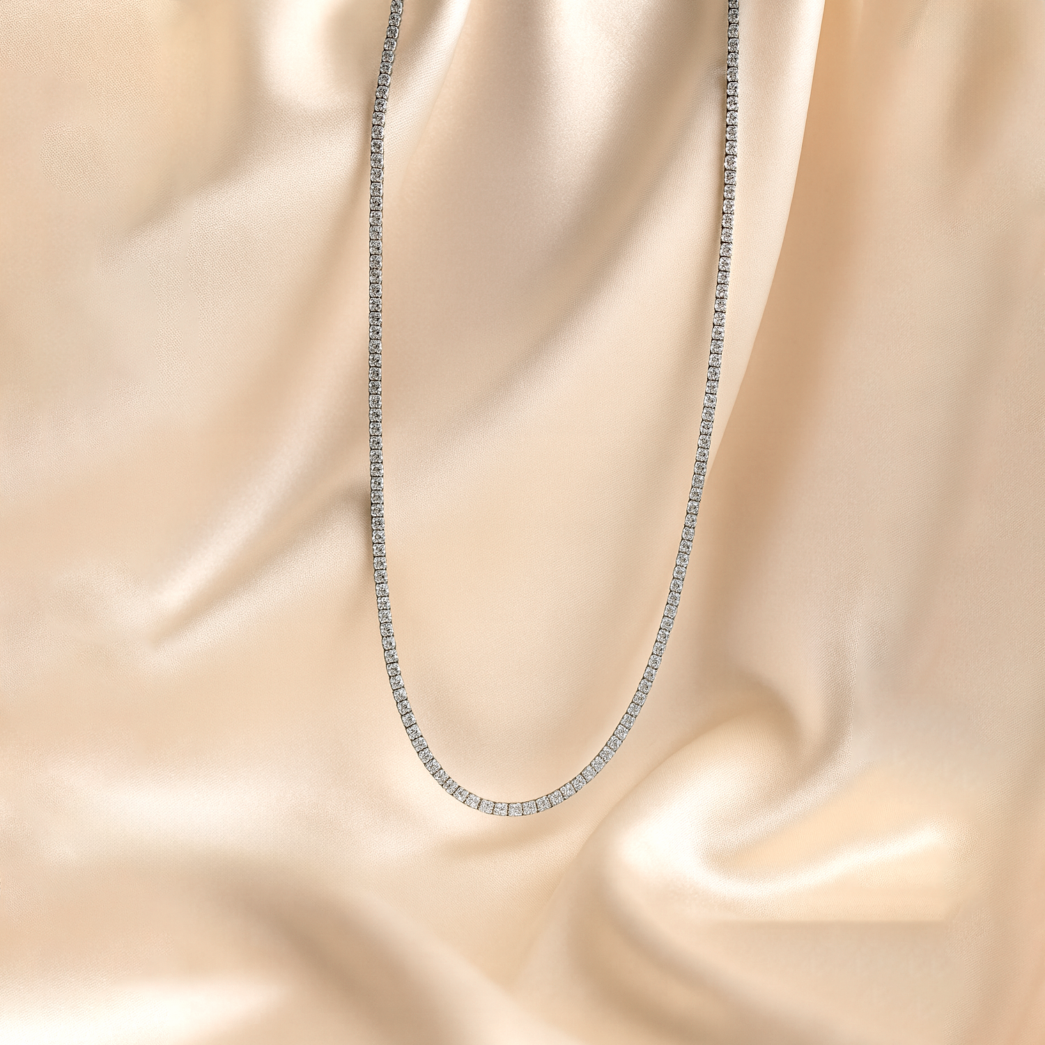 Perfect worn alone for understated sophistication or layered for a bold statement, this diamond tennis necklace is a true jewellery essential.