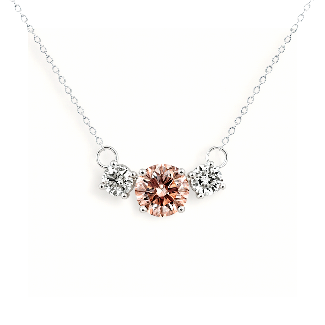 Subtle, refined, and effortlessly elegant, this 9K White Gold Lab-Grown Pink & White Diamond Necklace is designed for everyday sophistication. At its centre, a soft round lab-grown pink diamond is beautifully balanced by two sparkling lab-grown white diamonds, creating a timeless three-stone design that symbolises harmony and elegance.