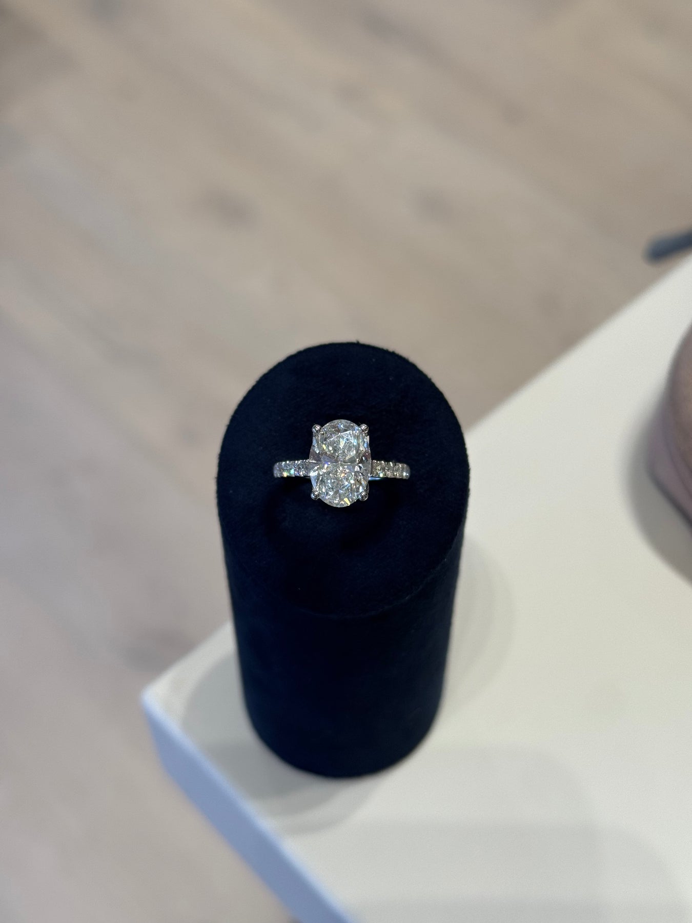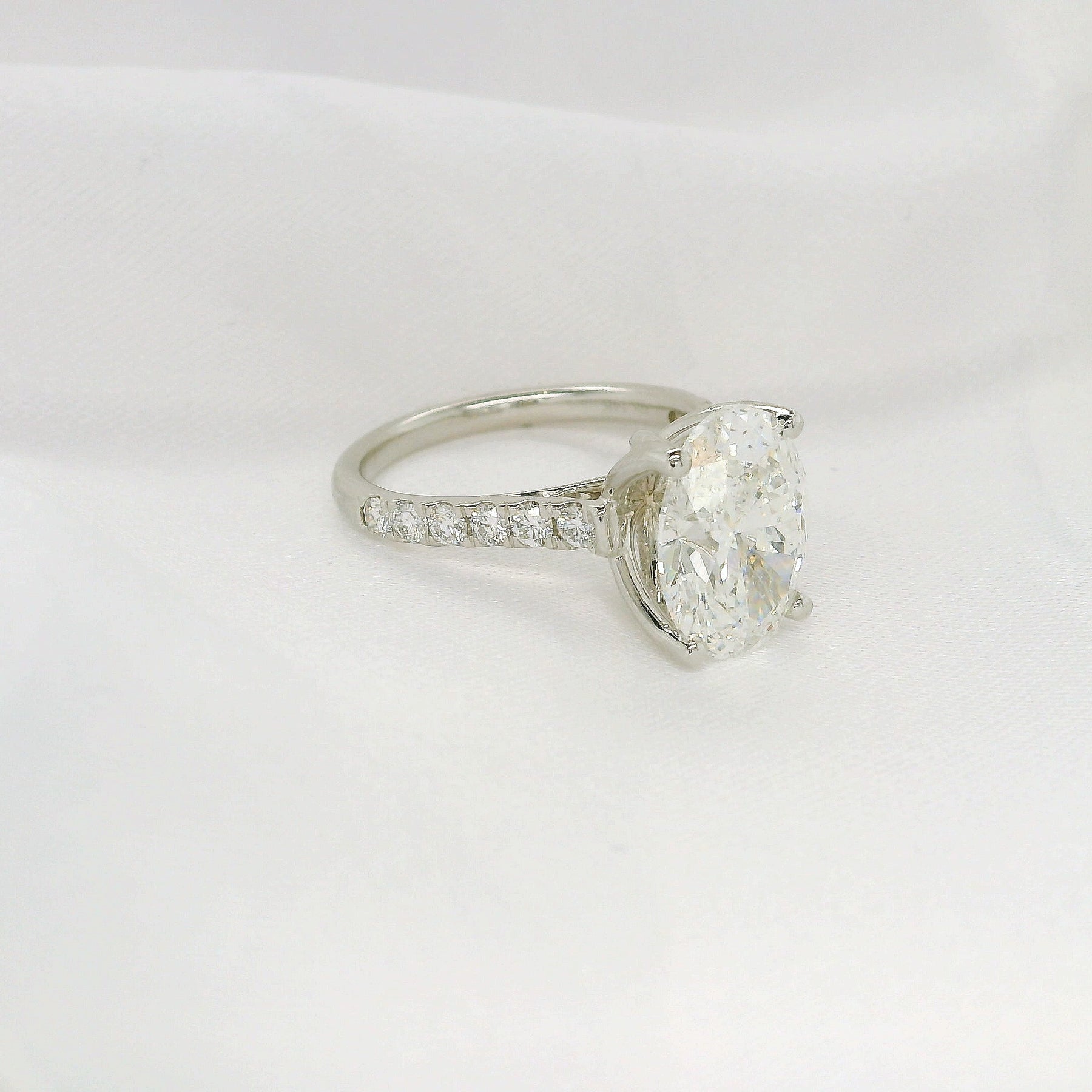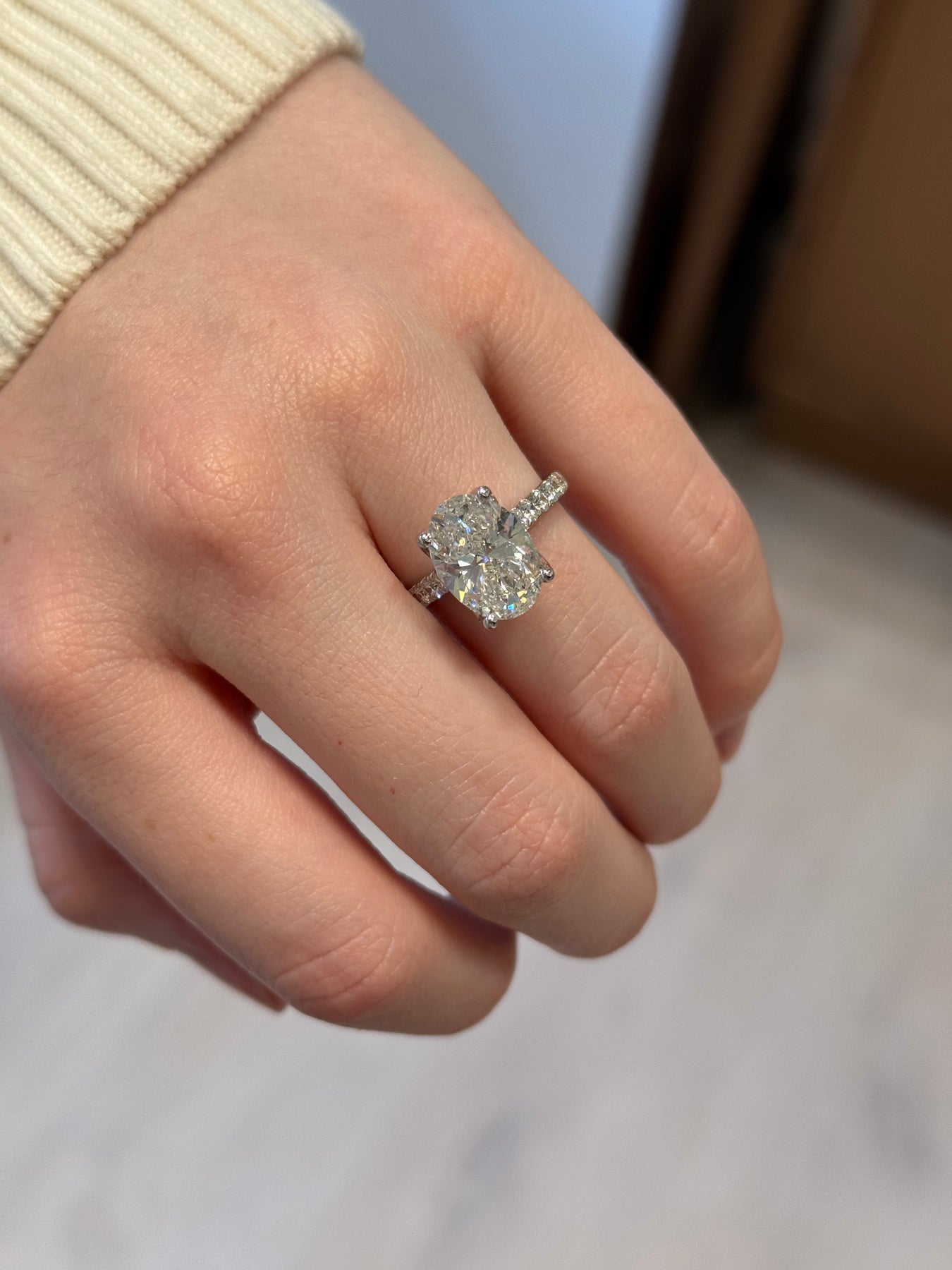 4ct Oval Lab-Grown Diamond Engagement Ring - High Set with Diamond Band