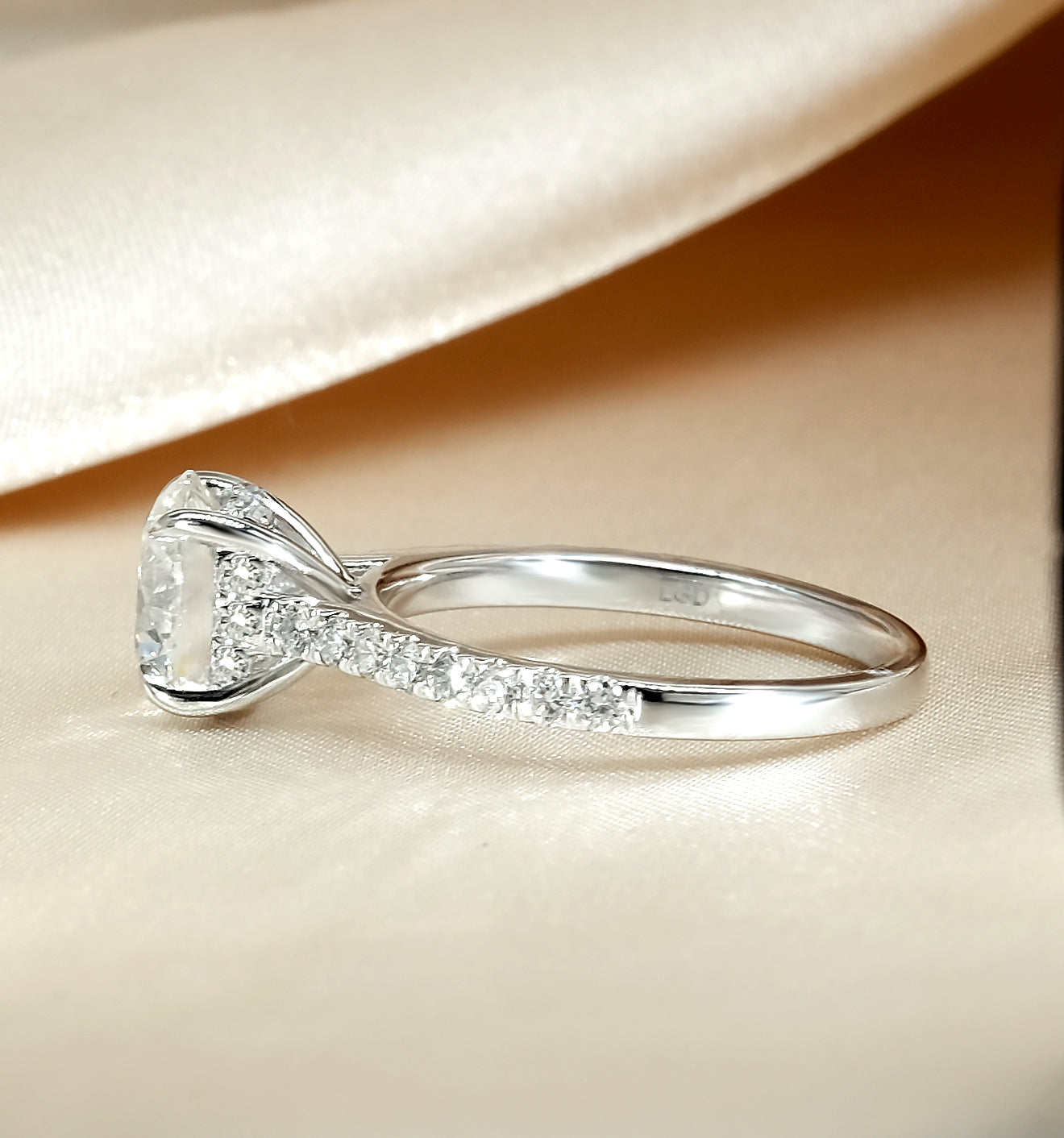 Accent Diamonds: Hidden halo & pavé shoulders