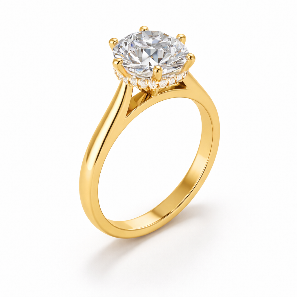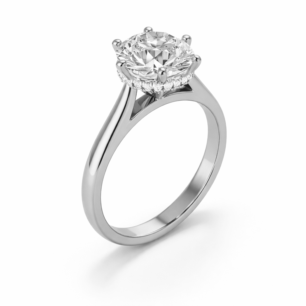 The Clare Ring - Hidden Halo 6-Claw Cathedral Round Solitaire