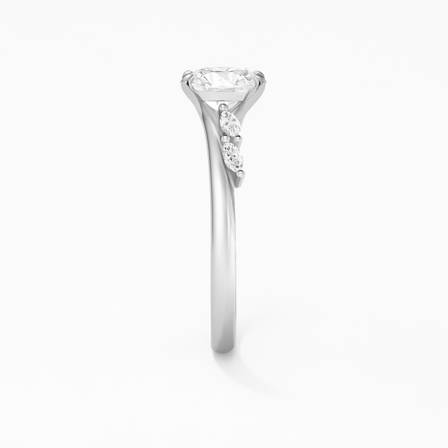 This engagement ring is fully customisable with your choice of centre stone shapes, including round, oval, marquise, and more. It is available in your preferred metal: 14K or 18K yellow, white, or rose gold, as well as platinum.